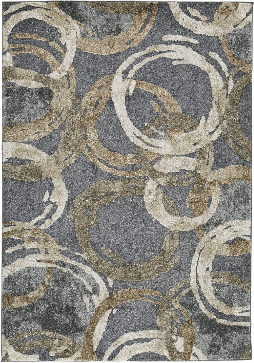 Motif de cercles abstraits tissés à la machine dans des tons de crème, de gris et de brun.