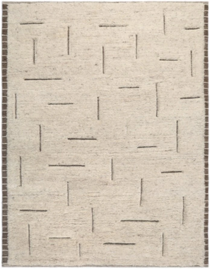 Tissé à la main, motif géométrique asymétrique, beige et marron