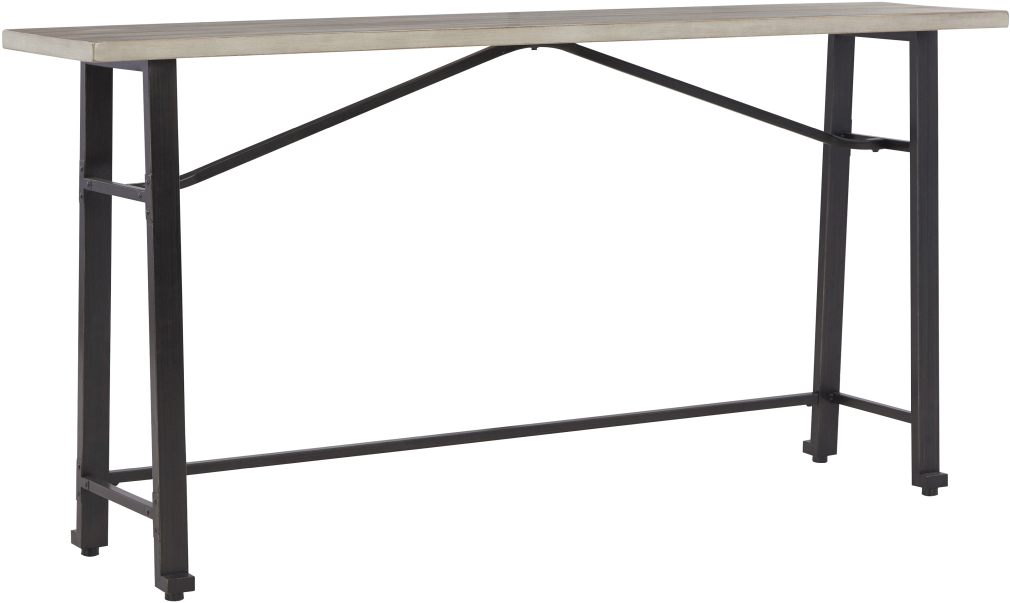 Apportez une atmosphère de bar branché à la maison avec cette longue table de comptoir. Dotée d'un plateau en placage d'acacia dans une finition blanchie à la chaux et d'un cadre en métal foncé pour un charme rustique, elle s'adapte parfaitement à un mur ouvert ou à un canapé pour tirer le meilleur parti de votre espace de vie.Read More